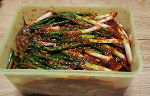 밑에서 양념이 쪽파에 무쳐지게 올리면서 양념을