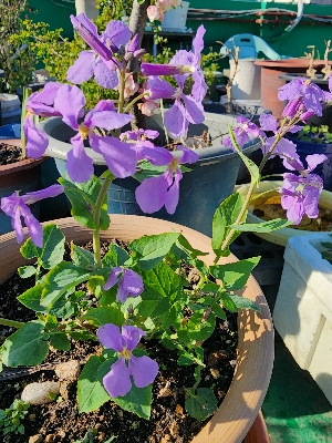 이렇게 맑고 밝은 보라유채꽃이 피었습니다.